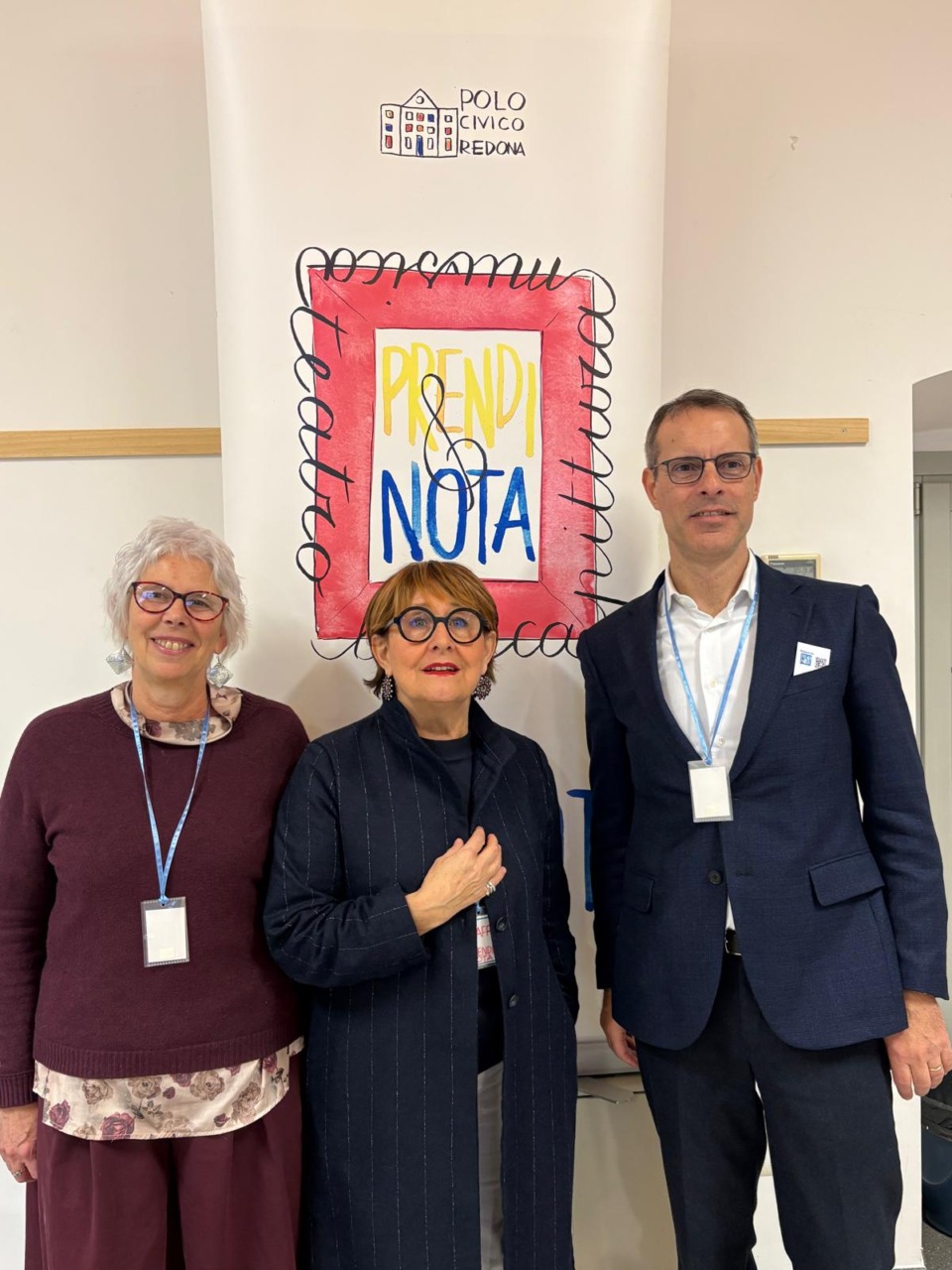 PrendiNota è una rassegna culturale nata a Redona nel 2016, con l’obiettivo di portare cultura di qualità nei quartieri, creando occasioni di incontro e di riflessione attraverso linguaggi diversi: musica, teatro, arte, storia e attualità. Ideata e curata da Laura Tassetti e Fernanda Ghirardini, affiancate nell’edizione 2026 da Alberto Gagliano, la rassegna si è progressivamente consolidata come uno spazio di dialogo aperto, capace di coniugare approfondimento e partecipazione.