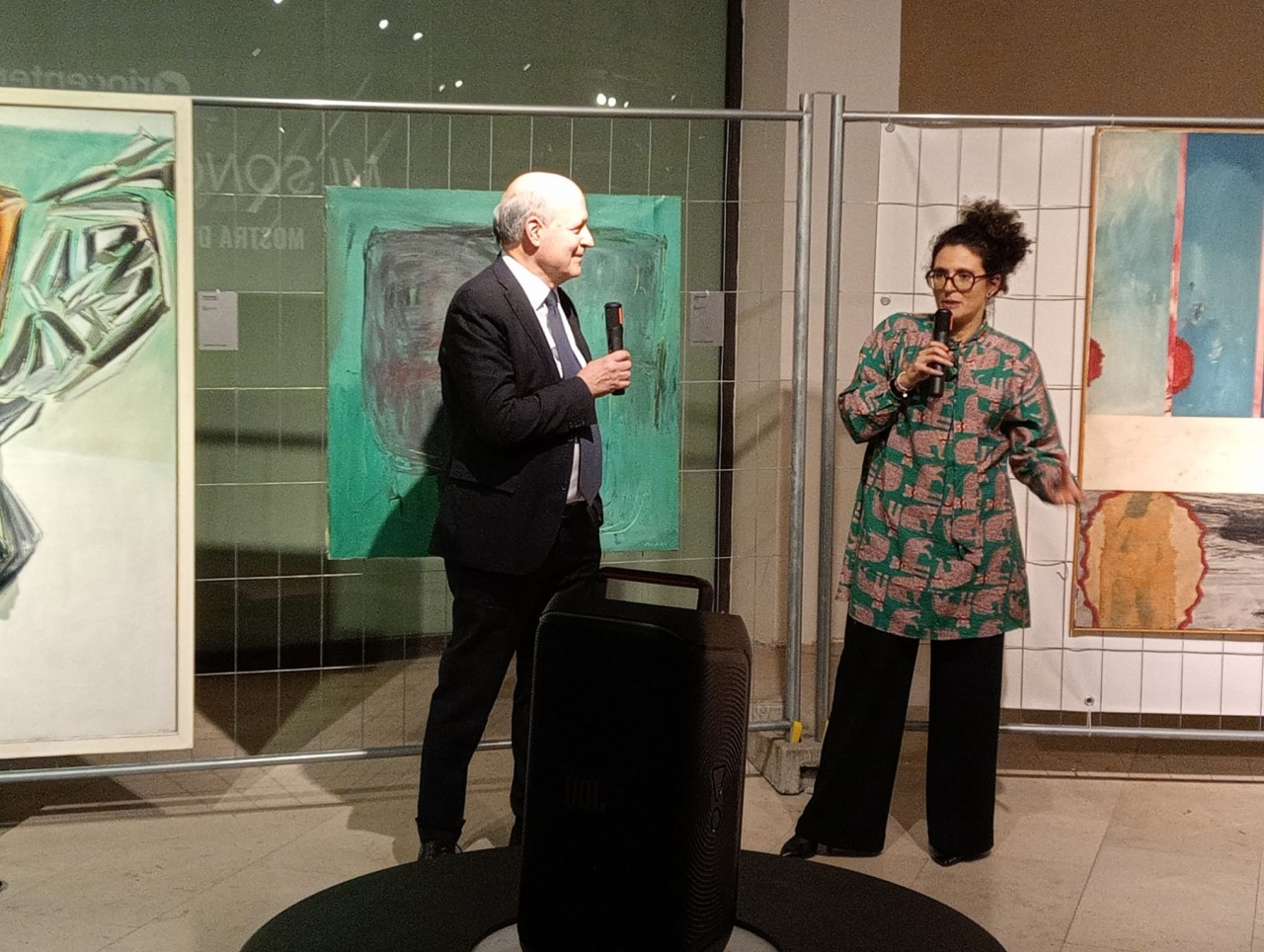 I due hanno accompagnato il pubblico alla scoperta della genesi e della struttura della mostra: Raimondo ha illustrato il percorso espositivo e le scelte curatoriali, spiegando che «lo spazio, lasciato volutamente nella sua dimensione di negozio dismesso, diventa parte integrante del racconto e dialoga costantemente con le opere e con chi le attraversa», mentre Torriani ha condiviso il legame personale e profondo che lo unisce alle opere esposte, raccontando la sua storia di collezionista e affermando che «ogni opera custodita è un incontro che continua nel tempo, capace ancora oggi di sorprendermi ed emozionarmi».