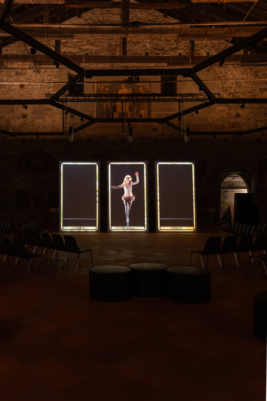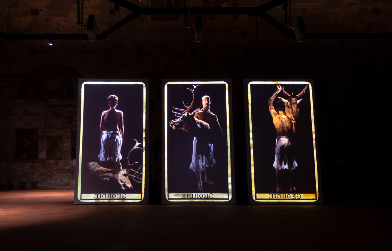 All’interno della Sala delle Capriate prendono forma e risuonano 31 brani musicali, presentati sotto forma di Tarocchi: i personaggi più conosciuti delle storie narrate in musica da De André (da Piero a Geordie, da Andrea a Marinella, fino a Bocca di Rosa) si avvicendano in un trittico video capace di unire l’atmosfera umana e poetica delle canzoni cantate dal cantautore all’immaginario degli Arcani maggiori.