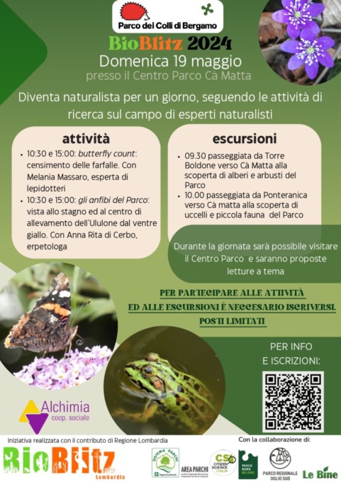 Si parte alle 10.30, poi il replica alle 15, con un butterfly count, ovvero un censimento delle farfalle con le loro forme e colori insieme all’esperta di lepidotteri Melania Massaro. Sempre alle 10.30 (con replica alle 15), Anna Rita di Cerbo, erpetologa, curerà una visita allo stagno e al centro di allevamento dell’ululone dal ventre giallo, raccontando la folta presenza degli anfibi nel Parco dei Colli di Bergamo.