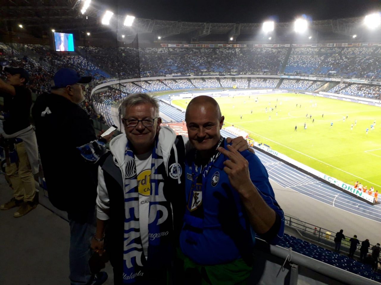 Freddo a Bergamo, caldo a Napoli. La differenza di temperatura tra Bergamo è Napoli è notevole: chi parte in treno o in aereo si trova ben presto immerso nei 24 gradi dell’ora di pranzo all’ombra del Vesuvio, qualcosa di decisamente anomalo per la fine del mese di ottobre. L’Atalanta si allena al mattino all’accademia calcio di Posillipo, ma la sgambata serve solo per prendere confidenza con il clima visto che di indicazioni particolari non ne arrivano. Chi è partito da Bergamo di primissima mattina sceglie il pranzo in zona Frosinone e l’arrivo allo stadio avviene senza nessun tipo di intoppo. Rispetto ad altre occasioni, questa volta ai bergamaschi presenti viene riservato l’accesso nella zona alta del settore ospiti e con la tribuna stampa che è posizionata di fianco alla barriera divisoria si sente pure qualche coro.