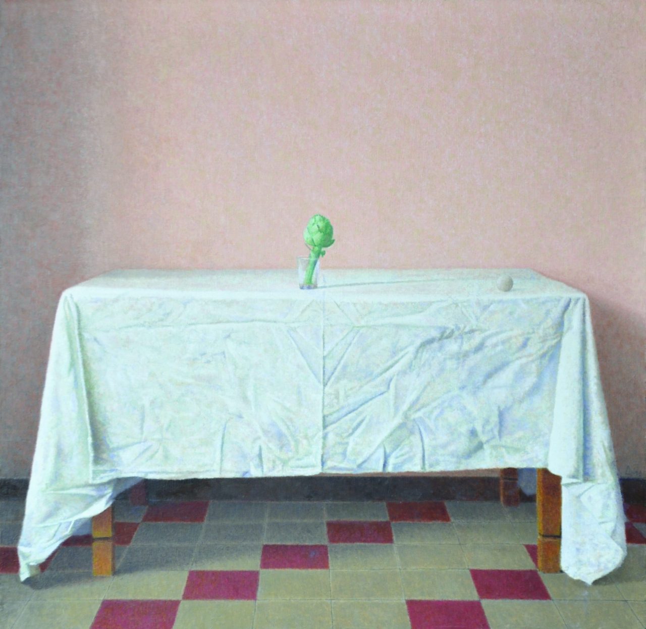 Ritorno alla pittura. «I pittori della Metacosa – scrive ancora Sgarbi – testimoniavano un’insoddisfazione, e la necessità di un ritorno alla pittura, che non fosse però nell’ordine del già conosciuto neorealismo e, tanto meno, della testimonianza ideologica di Guttuso o delle isolate esperienze di Alberto Sughi e di Riccardo Tommasi Ferroni. Non erano comunque soluzioni. E così, in Lombardia, intorno a Gianfranco Ferroni e alla sua solitaria ed estrema riflessione su Vermeer, si riuniscono alcuni rigorosi e intransigenti filosofi che hanno scelto il linguaggio della pittura per dire il loro pensiero. E, dovendo definirsi in gruppo, come il secolo chiede, nel movimentismo che lo anima, trovano la formula che ne indica le affinità con l’esperienza più luminosa, breve e radicale: la Metafisica. Metafisica/Metacosa: un’idea felice, anche se forse non fortunata, ma ben corrispondente alla visione e al metodo che, almeno nella prima fase, ne distinguono i caratteri e l’ispirazione».