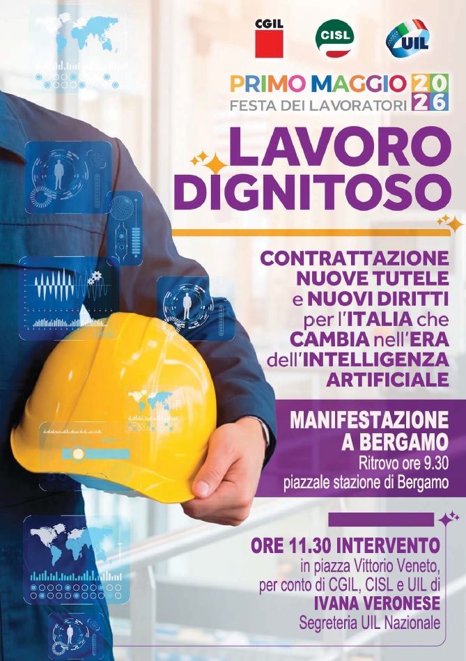 «Il lavoro è il fondamento della nostra società». Attraverso questo messaggio Cgil, Cisl e Uil Bergamo hanno presentato il programma del Primo Maggio 2026, confermando la tradizionale sfilata cittadina e rilanciando il tema delle nuove tutele nell’era dell’Intelligenza Artificiale.