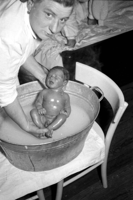 Come in un album di famiglia, ogni foto riporta alla memoria volti, luoghi, emozioni. È il caso del battesimo del 1960, dove la piccola Marina Sana entra per la prima volta in chiesa sulle braccia delle madrine, circondata dai propri cari; o del primo compleanno di un bambino che ride, affacciato dal suo seggiolone, con una fetta di torta pronta per lui. C’è la purezza di un neonato che fa il suo primo bagnetto in un mastello di latta, cullato dalle braccia dell’ostetrica Ada Pezzani, che ha assistito al parto in casa come era di prassi a quel tempo. Era la moglie di Eugenio Rosati, per alcuni decenni capostazione a Ponte San Pietro; la loro figlia Mirella è stata sindaco dal 1990 al 1992.