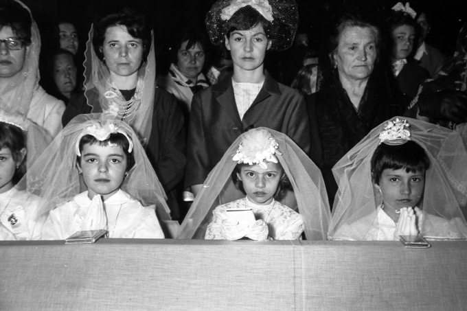 Le foto raccontano momenti intimi come il saluto delle prime comunioni, dove le bambine in abiti bianchi e pizzi portano in processione le loro candide corone, mentre i maschietti siedono in giacca, cravatta, guanti bianchi, con la loro fascia di seta con frange dorate al braccio. C’è poi la sposa che, in un hotel di lusso, si scambia un bacio d’amore col marito, riflessi entrambi in uno specchio che fa da sfondo a quella che sarà una delle loro foto più care. E quella dove Vanna Rigotti, sorella di Mosè, gioca a fare la mamma con la sua bambola, in un salotto dal sapore d’epoca.