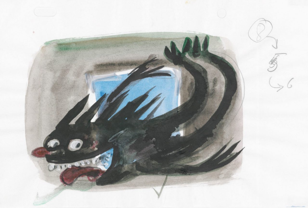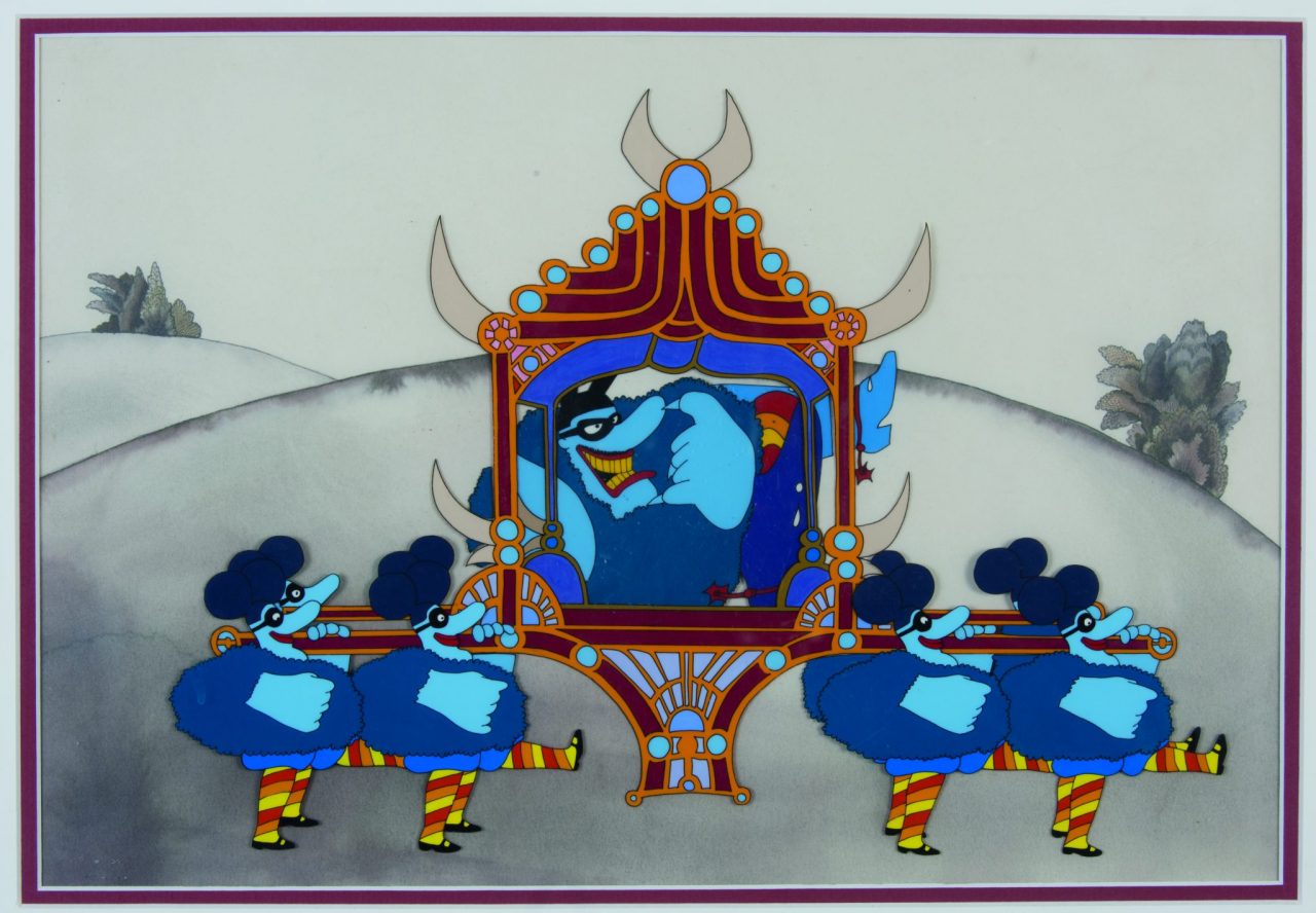 Tanti i pezzi forti in esposizione. C’è uno schizzo da “Topolino e il cervello in fuga” (Runaway Brain) del 1995 firmato dall’animatore polacco Andreas Deja, noto per il suo lavoro agli Walt Disney Animation Studios. È stato supervisore all’animazione di Roger Rabbit e nel 2006 ha ricevuto il prestigioso Winsor McCay Award. Sempre di casa Disney, il brasiliano Sandro Cleuzo, ora Dreamworks, qui rappresentato un disegno da “Le Follie dell’Imperatore” (Disney, 2000) e anche autorevole docente di animazione. Ci sono autografi di Ilja Bereznickas, che potremmo definire un “Bozzetto lituano”, autore di cortometraggi ma anche docente e autore di un volume sul cinema d’animazione. Di gran rilievo due artwork dei prestigiosi film “cinquantenni d’oro” che nacquero nel fatidico 1968, ovvero “Yellow Submarine” e il bozzettiano “Vip mio Fratello Superuomo”. Poi, per venire ai personaggi dichiaratamente di dubbia, precaria o nulla stabilità mentale, Picchiarello, nomen omen, campione di nevrotico parossismo; gli eroi Warner Bros. come Bugs Bunny, Daffy Duck e quel Coyote autolesionista che sfida ogni legge della fisica in nome dell’ossessiva caccia al Beep-Beep.