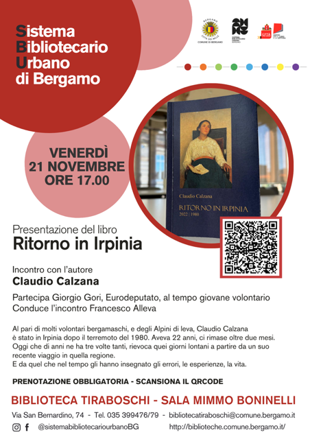 A 45 anni di distanza da quella tragedia, la Biblioteca Tiraboschi ha organizzato un incontro per ricordare quell’esperienza e ritrovare i protagonisti di allora. L’appuntamento è per venerdì 21 novembre alle ore 17 nella sala Mimmo Boninelli, in via San Bernardino 74, in occasione della presentazione del libro “Ritorno in Irpinia”.