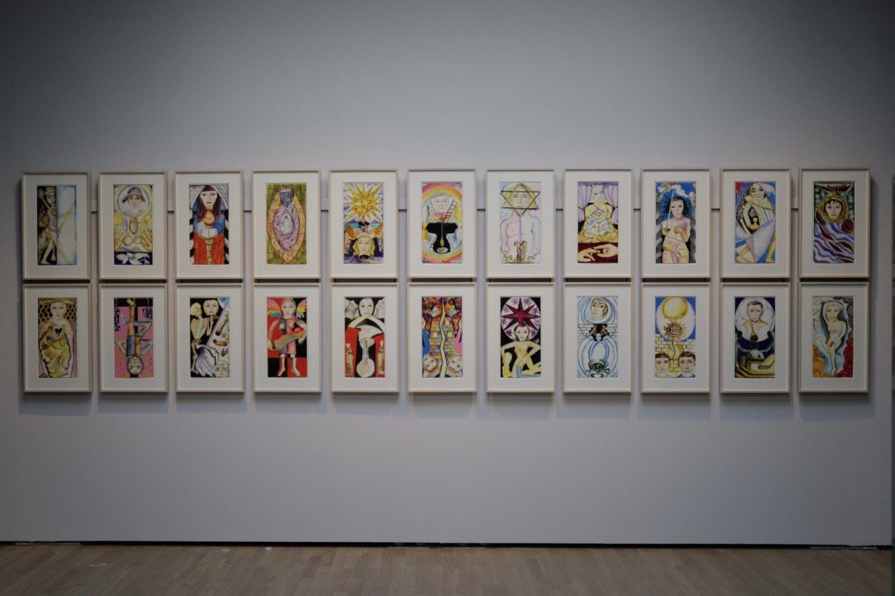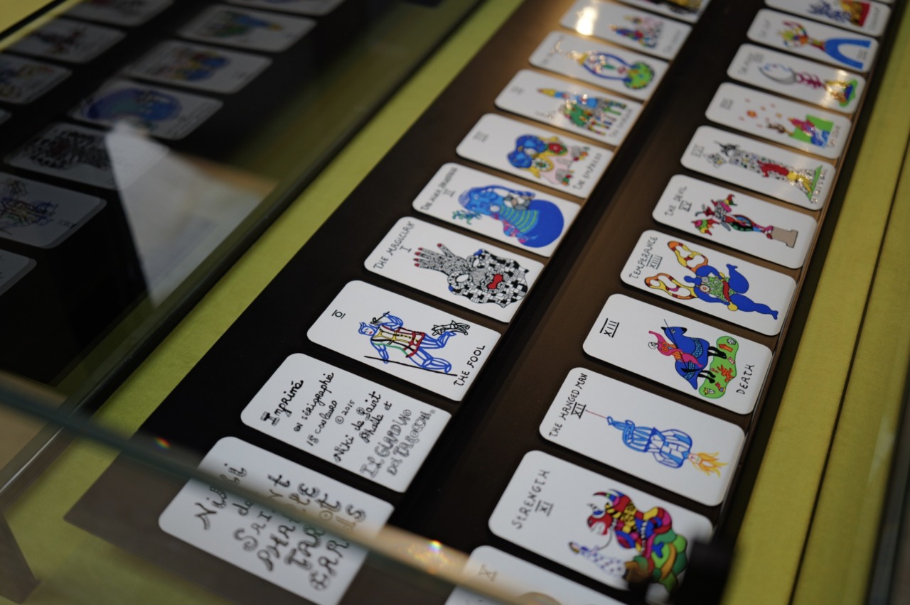 La quinta sezione racchiude il mazzo Colleoni in dialogo con altre opere coeve, mentre nella sesta i visitatori e le visitatrici sono condotti in un vorticoso viaggio nel tempo che racconta l’evoluzione dei tarocchi a partire dal Cinquecento, quando l’invenzione della stampa contribuì alla loro diffusione anche fuori dall’Italia, fino alla fine del Settecento e l’inizio dell’utilizzo a scopo divinatorio. L’ultima sala, dedicata al ‘900, è una vera e propria immersione nel potere immaginifico delle carte grazie a una selezione di opere di artisti che si sono ispirati ai tarocchi, dai surrealisti come Victor Brauner fino alle testimonianze più contemporanee di Niki de Saint Phalle, Leonora Carrington e Francesco Clemente.