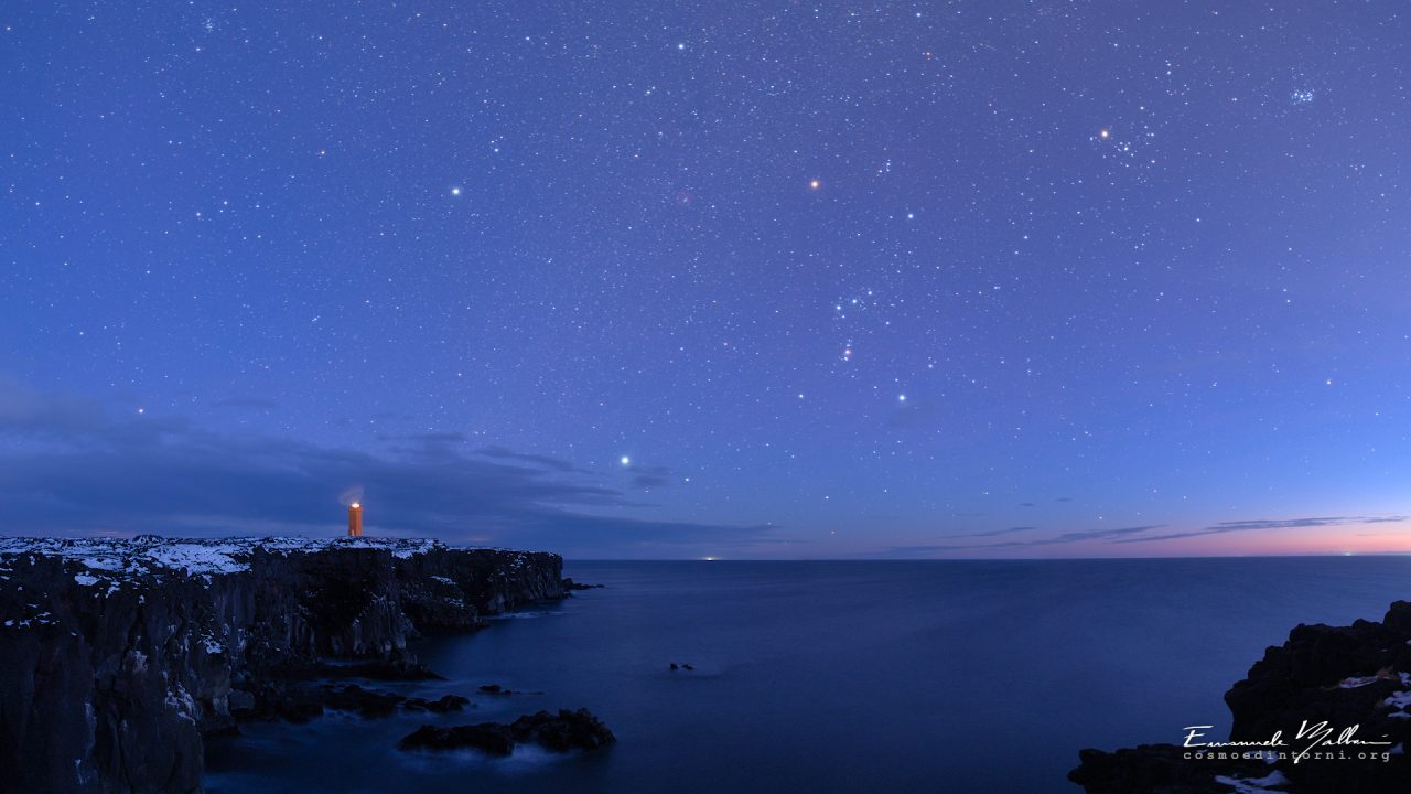 L’elevato numero di ore di oscurità del periodo, col solstizio d’inverno appena alle spalle, favorisce l’esplorazione. Partiamo dai pianeti. Nelle prime ore dal tramonto e in direzione sud-ovest di può vedere Marte, con la sua inconfondibile luce rossastra. Il giorno 21 ha lasciato la costellazione dell’Acquario e ha fatto il suo ingresso nei Pesci. Troppo in basso invece, non più osservabile, Saturno con i suoi anelli. Protagonista del cielo mattutino è invece Venere: domina la volta celeste nelle ore che precedono l’alba, a Oriente. Il 23 è arrivato a sorgere quasi 4 ore prima del Sole: per l’esattezza, il 23 dicembre. In questi giorni attraversa buona parte della costellazione della Bilancia. Anche Giove è ben visibile sull’orizzonte orientale, al mattino: sorge non lontano dalla stella Antares.
