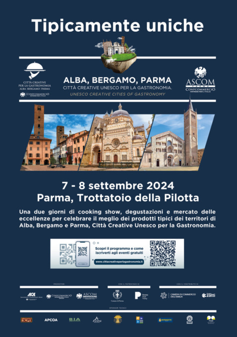 Nel 2022 è toccato a Bergamo con Forme, nel 2023 ad Alba nell’ambito della Fiera internazionale del tartufo bianco d’Alba. Quest’anno le tre città, accomunate dal titolo di Città creative Unesco per la gastronomia, si ritroveranno a Parma il 7 e l’8 settembre, nel Trottatoio della Pilotta, nell’ambito dell’evento “Tipicamente uniche”.
