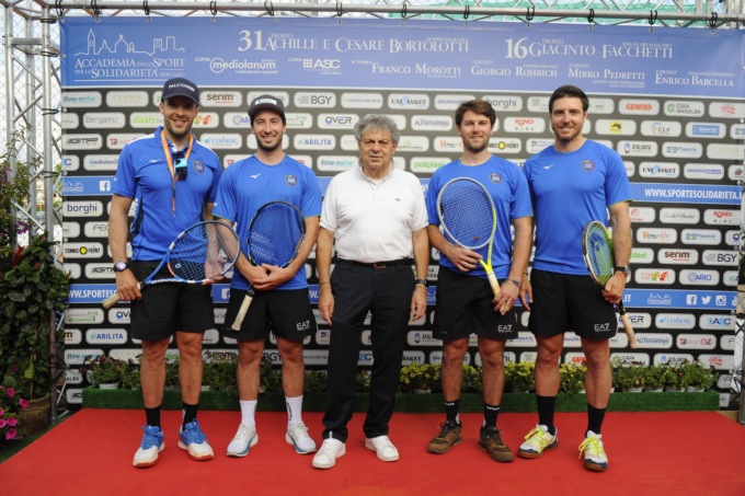 Siamo alle porte dell’estate, ma al Tennis continua a parlare anche di neve, con un team di sciatori alpini che si è esibito in doppio: da un lato della rete Christof Innerhofer (che viene in Accademia da vent’anni esatti) con Pietro Zazzi, dall’altra Niccolò Molteni e Mattia Casse. «Siamo fieri di essere qui anche quest’anno – sono le parole dei quattro sciatori -, grazie a Christof che fa da tramite con Giovanni Licini. È sempre bello venire qua a Bergamo, anzi complimenti all’Atalanta per la vittoria in Europa». E di vittorie importanti, Innerhofer ne sa qualcosa: «Sono stato fortunato nell’aver vissuto settimane come quelle di Garmisch e di Sochi, però per quanto è bello guardare indietro è anche bello avere nuovi obiettivi. Cerchiamo di rifarci subito questo inverno».