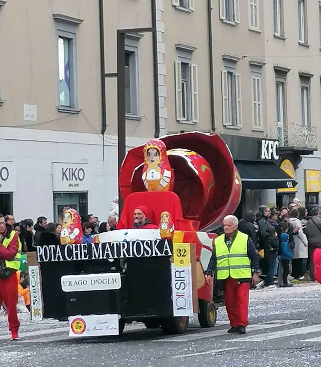 La sfilata si è conclusa ufficialmente alle 18, con la proclamazione dei vincitori di questa edizione 2026. Al primo posto, tra i gruppi, i “Pota che Matrioska”, nelle vesti della tipica bambola russa in legno, secondo posto per i “Da Venezia a Bergamo”, con indosso le classiche maschere veneziane, infine terzo posto per “I girasoli di Van Gogh”, in rappresentanza dell’Ucraina.