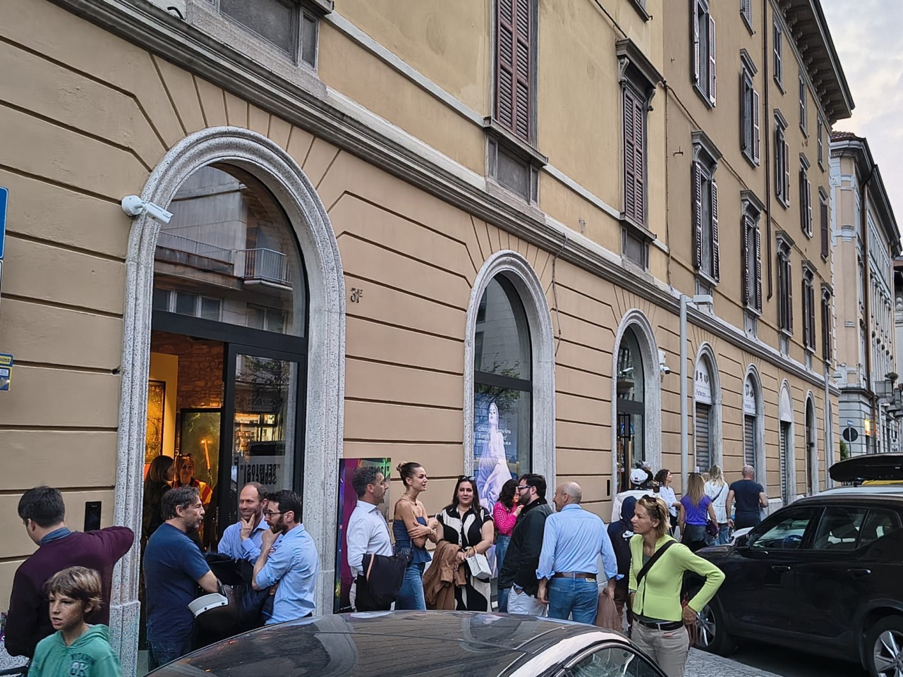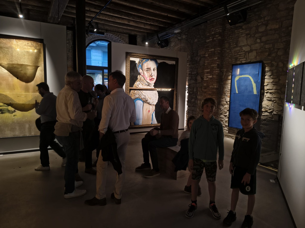 Ecco quindi che ci arrivano immagini di tele illuminate e luci soffuse, osservatori tra adulti e bambini, giovani e anziani, uomini e donne che si incontrano e discutono. Tra un sorriso e un calice di vino, quello che magari si può trovare a non troppa distanza da quelle vetrine, per un momento non occupa più così tanto i pensieri.