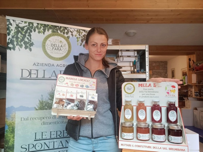 In occasione della Festa l’Azienda Agricola Della Fara di San Giovanni Bianco, già legata ad Afavb con una linea di prodotti a base di Mela Val Brembana, presenterà la novità 2024. Si tratta di sfoglie 100 per cento frutta disidratata a basse temperature e senza zuccheri aggiunti, con la forma che ricorda una caramella, dalla consistenza morbida. Sono tutte a base di mela in abbinamento a noce, mirtillo, mora, fragola.