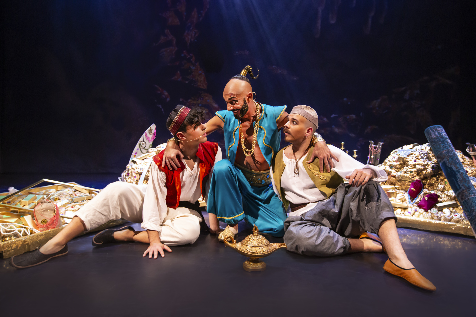 Sul palco un cast numeroso: Eugenio Grandi è Aladin, Eleonora Facchini Jasmine, con Alessandro Gaglio nei panni di Jafar e un ensemble che accompagna la storia con canto e danza.