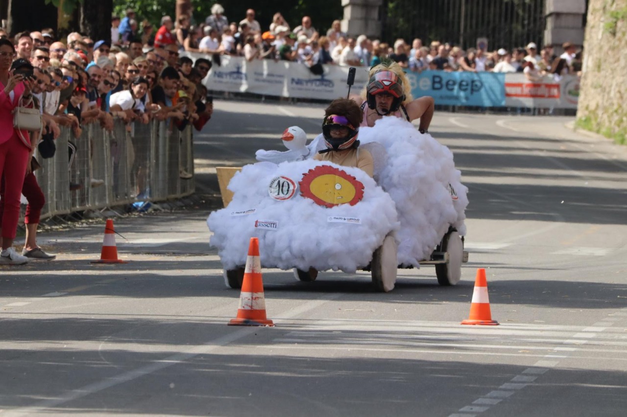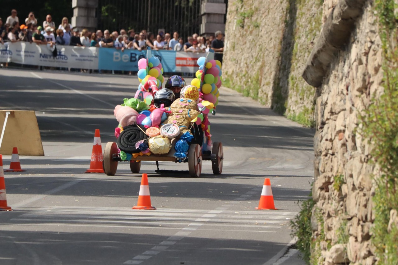 In pista 47 soap box, ognuna unica per design e costruzione: veri bolidi artigianali pronti a lanciarsi lungo le Mura. Il pubblico ha assistito a discese spettacolari e situazioni al limite: ruote volate via in pieno salto, traiettorie impazzite e persino equipaggi finiti nella vasca d’acqua. Momenti imprevedibili che hanno acceso l’entusiasmo, trasformando ogni discesa in una scarica di adrenalina.