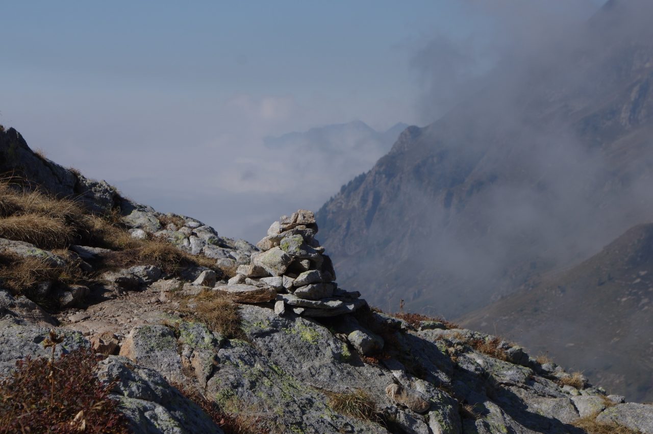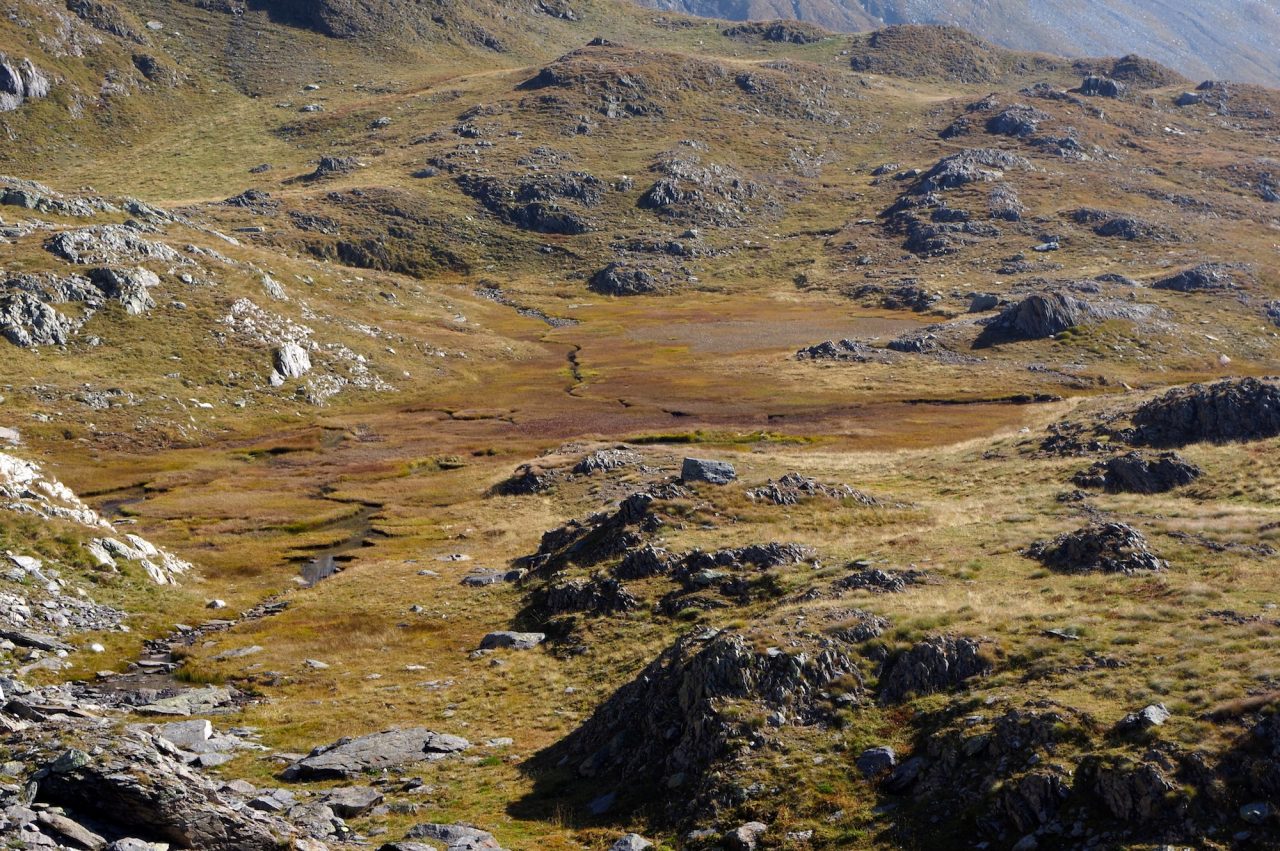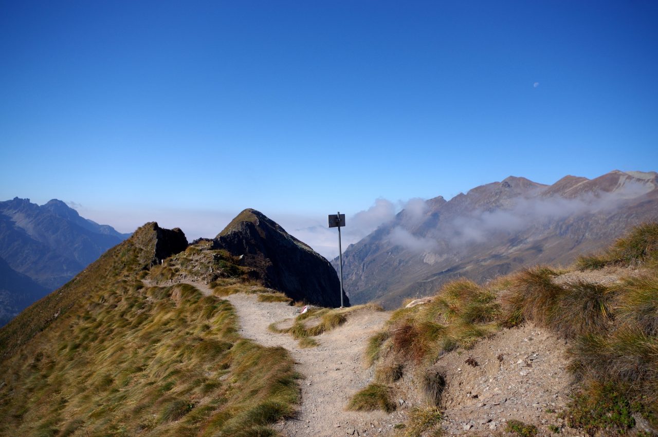 Dal rifugio al Passo di Selletta. Torta e caffè sono d’obbligo. La bella struttura, posta a metri 2026, è spesso defilata dai classici itinerari escursionistici. Il luogo ideale per chi desidera qualche ora di pace tra montagne quasi magiche. Di proprietà della Società Escursionistica Scais, è stato gestito per anni da Enzo Migliorini, figura storica del rifugio, che dalla prossima stagione cederà le redini a Renato Benigni. Recuperate le energie possiamo riprendere il nostro cammino, che ci porterà in direzione del Lago del Diavolo. Non facciamoci intimorire dal nome, il piccolo specchio d’acqua non ha assolutamente nulla di terrificante. Superata la diga lungo il suo coronamento, continuiamo lungo il sentiero CAI 246. L’ambiente inizia a cambiare, mostrando il paesaggio tipico e aspro che si presenta in quota. Il monte Aga, che si specchia nel lago sottostante, sorveglia ogni nostro passo, quasi come un attento gendarme posto a guardia della valle. Il ripido tracciato sale senza lasciare tregua, alternando tratti su prato a tratti su detriti e rocce, fino a portarci ai 2372 metri di quota, valico conosciuto come Passo di Selletta. Un balcone panoramico sulla Val Camisana e sulle montagne che ne fanno da corona: dal Pizzo del Diavolo, Cervino bergamasco per eccellenza, fino ai monti Grabiasca, Reseda, Madonnino e Cabianca. Ai loro piedi, a rendere il paesaggio quasi una cartolina, troviamo in rifugio F.lli Calvi e il Lago Rotondo.