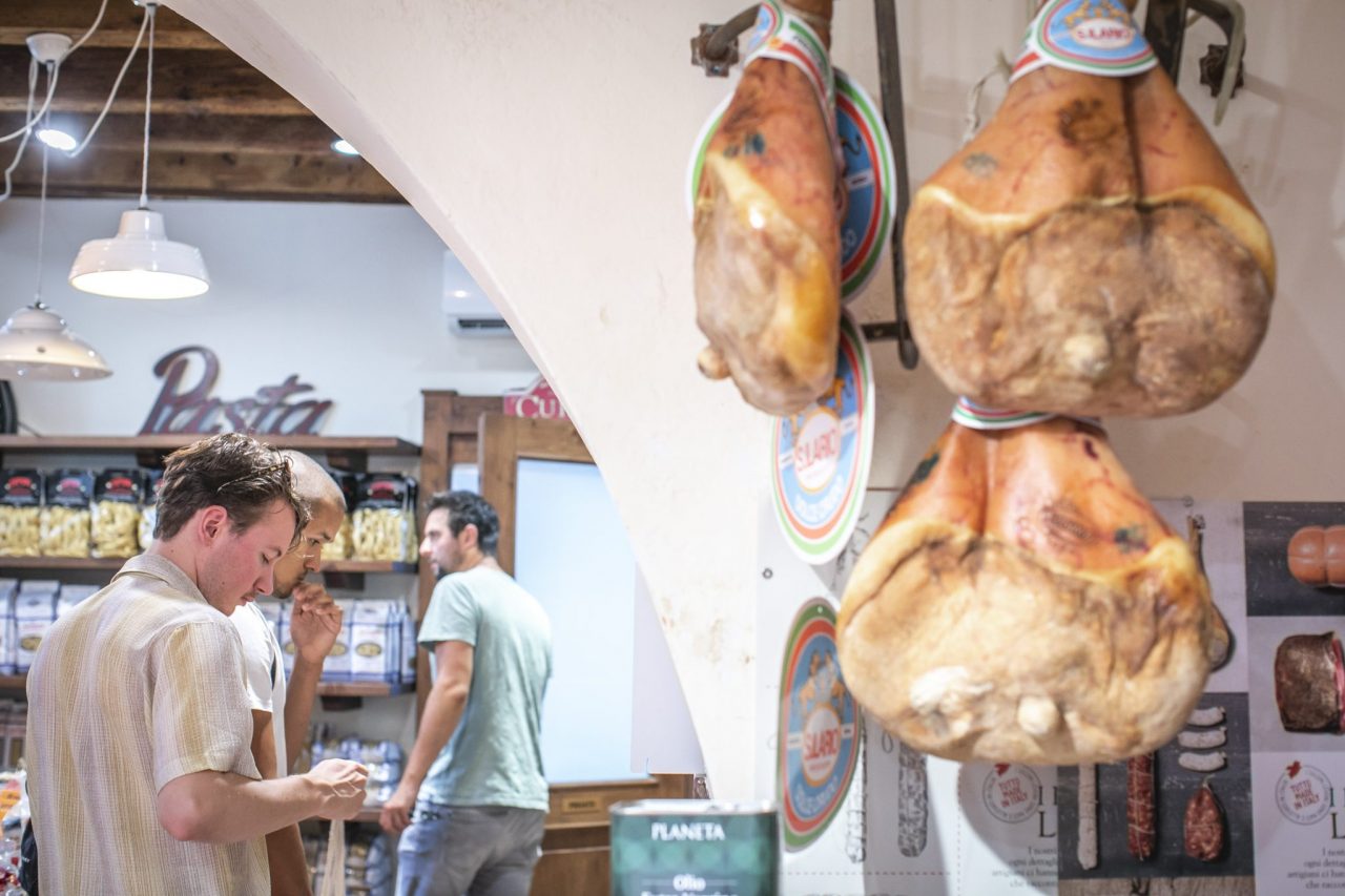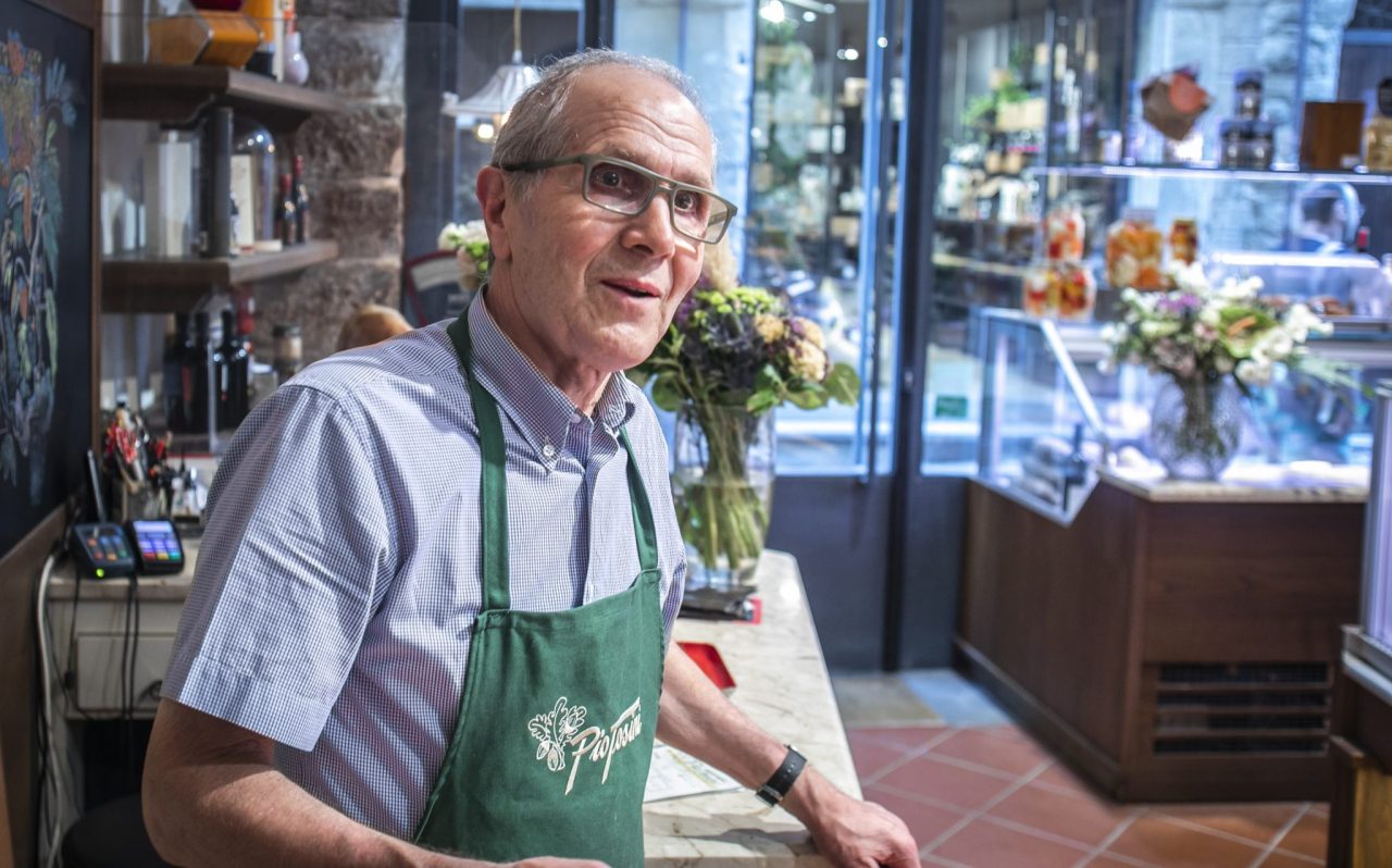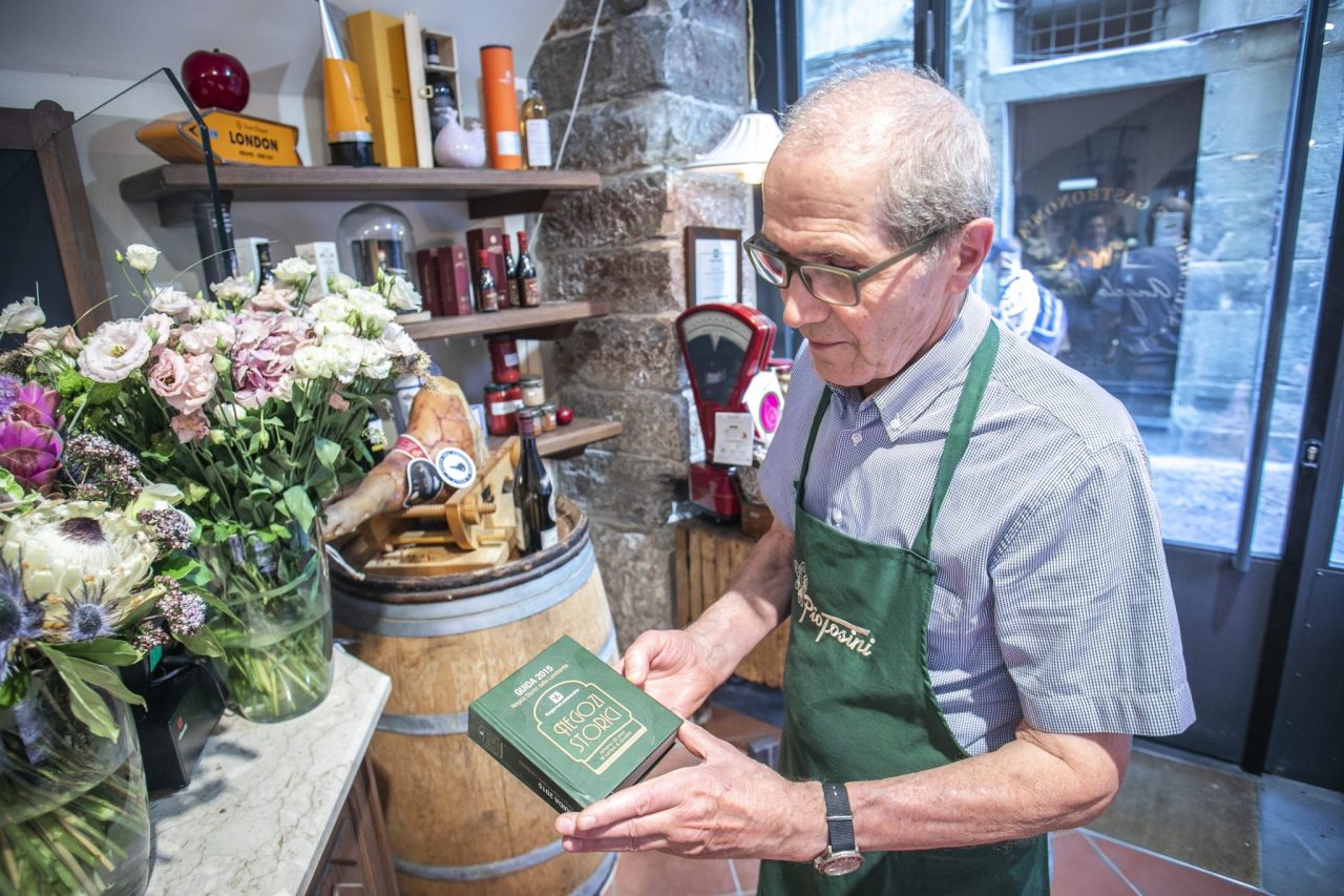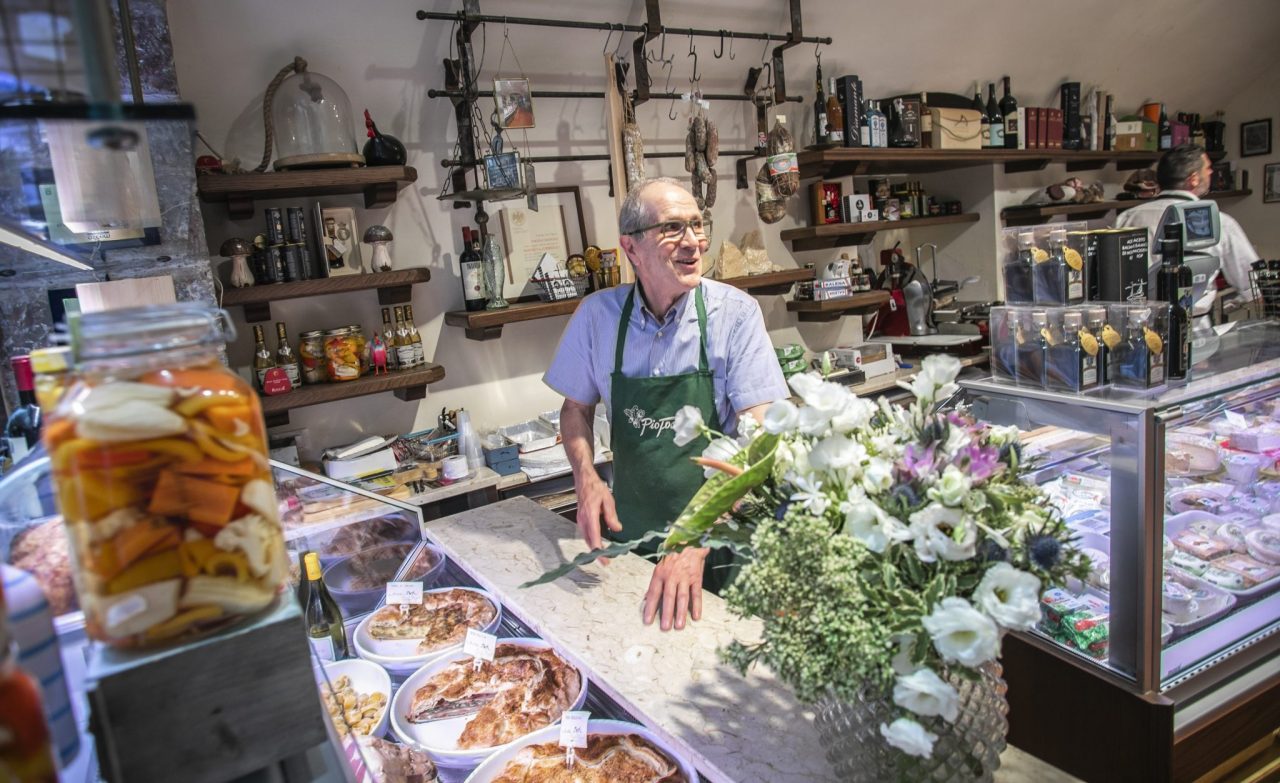 Chi ha frequentato la sua «bottega delle meraviglie» capisce in fretta quanto sia azzeccato il suo primo nome. Il signor Angelo è un uomo garbato nelle parole e nei gesti che ripete, come un artista artigiano, da una vita intera. Sorride sempre, e nello sguardo ha la tranquillità di chi ha dedicato tempo buono a ciò che ama, con rispetto e dedizione per cose e persone. Il suo «buongiorno» è fine e accogliente, le sue mani toccano i prodotti con delicatezza, e la calma con cui si prende cura dei clienti è parte dell’incanto. Il resto lo fanno i prodotti scelti uno a uno, perché anche offrire qualità alta è una forma di rispetto per gli altri. Angelo dice che la sua maggior competenza è «il taglio di salumi e formaggi», ma ha una straordinaria capacità di ascolto dei clienti e del tempo in cui vive. Verso la fine degli anni Settanta intuì che «stava cambiando tutto», che i supermercati erano concorrenti forti e che bisognava offrire qualcosa di nuovo. Così avviò anche la gastronomia, offrendo piatti fatti in casa da portar via: casoncelli, lasagne, vitello tonnato, roast beef e verdure ripiene. La vetrina e la disposizione dei piatti hanno l’armonia di un olio su tela.