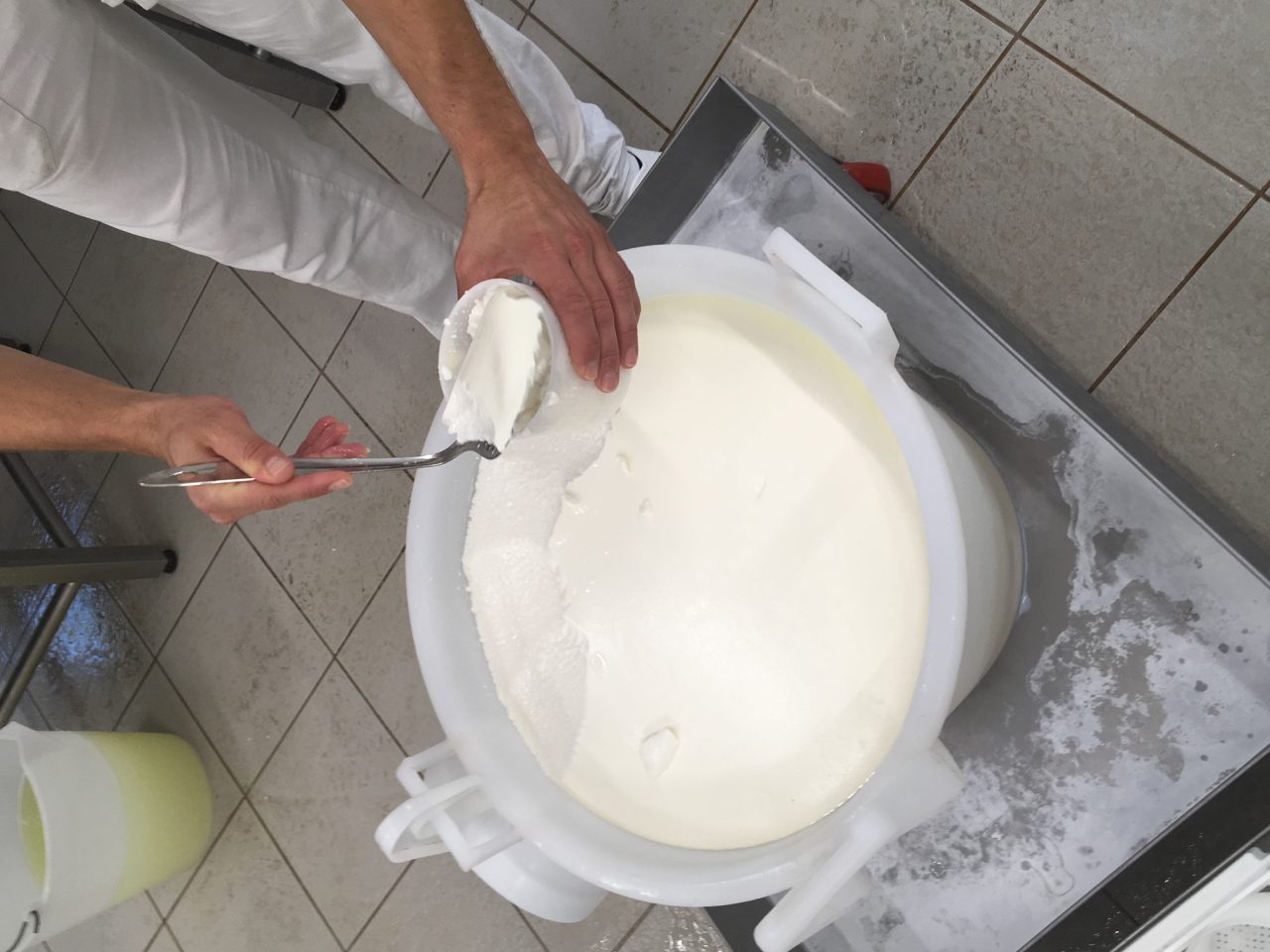 Chi si chiede quale sia a oggi l’effettiva produzione, deve sapere anzitutto che l’attività casearia si fonda sulla lavorazione tassativa a latte intero. Un’ottima formaggella è pensata tecnicamente perché non sia un prodotto troppo evoluto, troppo complesso, ma già godibile dopo un breve tempo di stagionatura. A meno che non si voglia sperimentare un lunga attesa per testarne le caratteristiche organolettiche in un lungo tempo. Interessantissimo il formaggio a coagulazione acida e particolarmente complesso dal punto di vista tecnico: nella lavorazione si crea un coagulo delicatissimo e si devono possedere le giuste conoscenze per trattarlo in un modo completamente diverso da molti altri formaggi. Il risultato e una gessatura pronunciata nel mezzo e una forte proteolisi sottocrosta. Una doppia consistenza piacevolissima che si fonde anche con sapori e sentori ficcanti e pronunciati: l’idea guida, qui, è quella di certi prodotti francesi dal profumo inconfondibile. Latte crudo sempre e su tutto, potrebbe essere il motto. Gli animali mangiano sempre fieno: lo sfalcio dei prati che in questa azienda avviene ancora a mano è un discorso quasi necessario per far capire che il presidio dell’uomo in montagna può essere totale. L’essiccamento, in alta quota, è obbligatorio per avere un fieno della miglior qualità possibile, anche se, come ricorda Giacomo, è un lavoro che costa fatica. Contrada Bricconi in questo momento rappresenta certamente un modello, che si auspica replicabile e esportabile, del concetto migliore del contadino moderno libero da qualsiasi deriva retorica ma ben saldo su concreti valori.